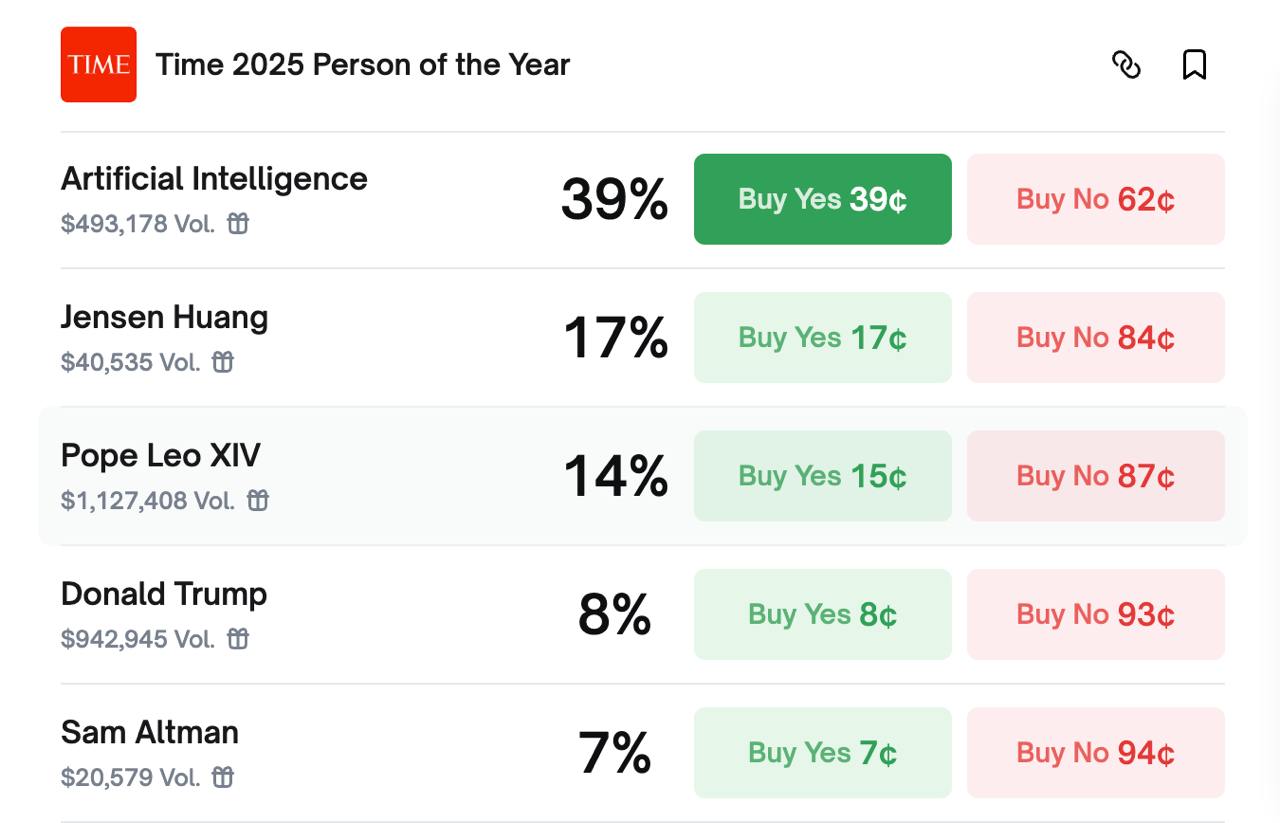 هر سال مجله معتبر Time یک فرد تأثیرگذار را به‌عنوان Person of the Year انتخاب می‌کند؛ اما امسال رقابت شکلی کاملاً متفاوت پیدا کرده: طبق داده‌های پلتفرم پیش‌بینی Polymarket، احتمال دارد برای اولین‌بار در تاریخ، یک مدل هوش مصنوعی روی جلد این مجله قرار بگیرد.